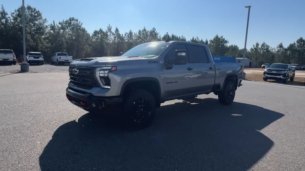 ENGINE, DURAMAX 6.6L TURBO-DIESEL V8 B20-Diesel compatible, (470 hp [350.5 kW] @ 2800 rpm, 975 lb-ft of torque [1322 Nm] @ 1600 rpm), TRAIL BOSS PACKAGE Includes black grille bar with "Chevy Black Bow Tie", Black grille inserts, (SRI) 20" High gloss Black painted wheels, (VB5) High Gloss Black painted front bumper, (VT5) High Gloss Black painted rear bumper, (UGA) Red Tow Hooks, (QFG) LT275/65R20 BF Goodrich off-road tires, Black skid plate, Black badging, Black bowtie on horn pad, (DP6) High Gloss Black mirror caps, Black hood vent surround, High Gloss Black door handles and (CGN) Chevytec spray-on bedliner. Includes high-intensity LED headlamps and (DWI) trailer mirrors. SAFETY PACKAGE includes (UD5) Front and Rear Park Assist, (UKV) Trailer Side Blind Zone Alert, (UFG) Rear Cross Traffic Alert, (UV2) HD Surround Vision, (UVN) Bed View Camera and (TRG) Trailer Camera Provisions (Includes (UET) Trailering App. CONVENIENCE PACKAGE includes (UF2) Cargo bed LED lighting, (CJ2) dual-zone automatic climate control, (A2X) 10-way power driver seat including power lumbar, (N37) manual tilt/telescoping steering column, (T3U) LED fog lamps, CONVENIENCE PACKAGE II includes (PZ8) Hitch Guidance with Hitch View, (UET) Trailering App, (A48) rear sliding power window and (UG1) Universal Home Remote. Includes (R7O) Cloth Rear Seat with Storage Package. REMOTE START PACKAGE includes (BTV) Remote Start, (UTJ) Theft Deterrent System and (C49) rear-window defogger, Z71 OFF-ROAD PACKAGE includes (Z71) Off-Road suspension with off-road tuned twin tube Rancho shocks, (JHD) Hill Descent Control and (NZZ) skid plates (transfer case and oil pan) (Includes (QXT) LT265/70R17 all-terrain, blackwall tires and molded in color Black grille. MIRRORS, OUTSIDE POWER-ADJUSTABLE VERTICAL TRAILERING WITH HEATED AND AUTO-DIMMING UPPER GLASS lower convex mirrors, turn signal indicators, puddle lamps, (U12) perimeter lighting, auxiliary lighting, power folding/manual extending (extends 3.31" [84.25mm]) Includes (DD8) auto-dimming rearview mirror which can be upgraded to (DRZ) Rear Camera Mirror.), TAILGATE, MULTI-FLEX with six functional load/access features, NOTE: Auto release can be disabled if ball hitch is installed. See Owner's manual for details, HEAT PACKAGE includes (KA1) Heated driver and passenger seats and (KI3) Heated steering wheel, AUDIO SYSTEM, CHEVROLET INFOTAINMENT 3 PREMIUM SYSTEM with Google built-in compatibility (select service plan required, terms and limitations apply) including navigation capability, 13.4" diagonal HD color touchscreen, includes multi-touch display, AM/FM stereo, Bluetooth® streaming audio for music and most phones; featuring Wireless Apple CarPlay® and Wireless Android Auto® capability for compatible phones, advanced voice recognition, in-vehicle apps, personalized profiles for infotainment and vehicle settings (STD), TRANSMISSION, 10-SPEED AUTOMATIC, SEAT, UP-LEVEL REAR WITH STORAGE PACKAGE 60/40 Split rear seat with center armrest, right, and left seat back storage, and under seat jack storage (Crew Cabs Only) Rear seat leather appointed.